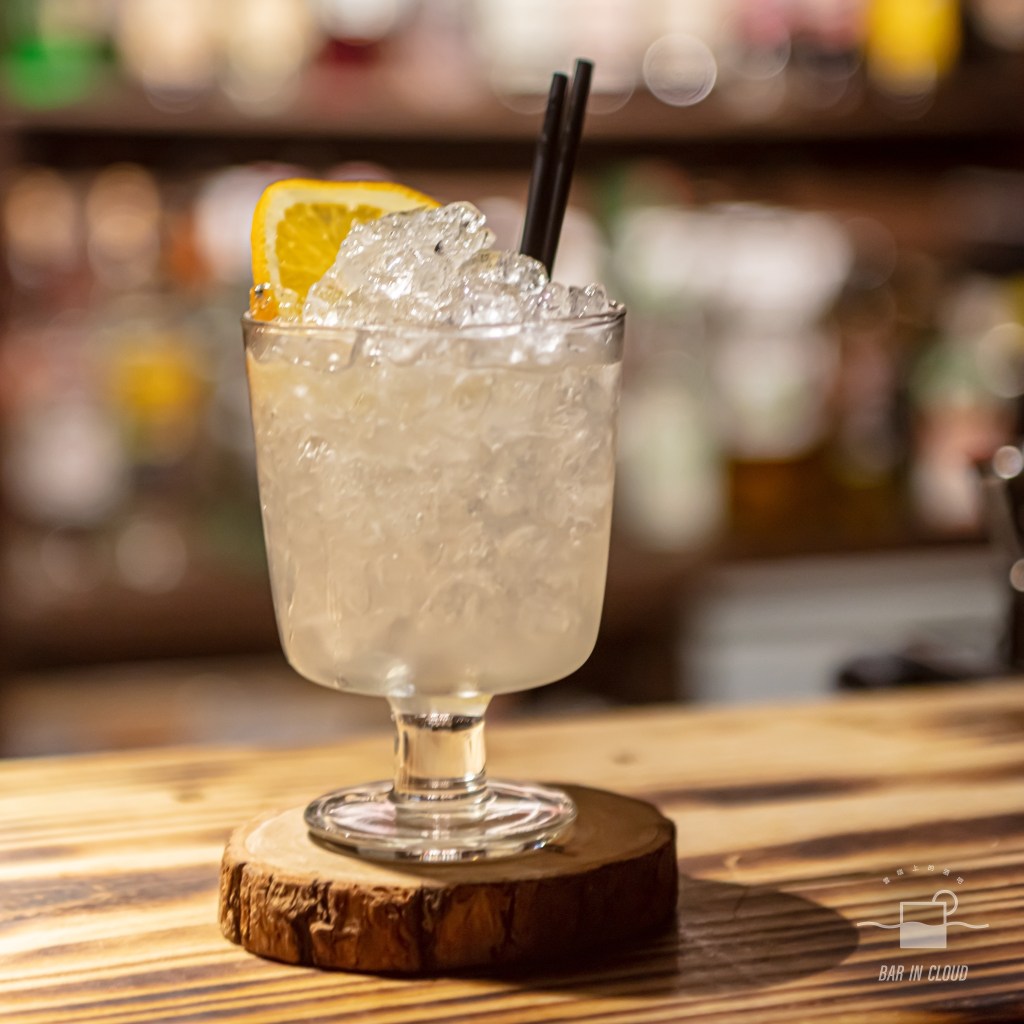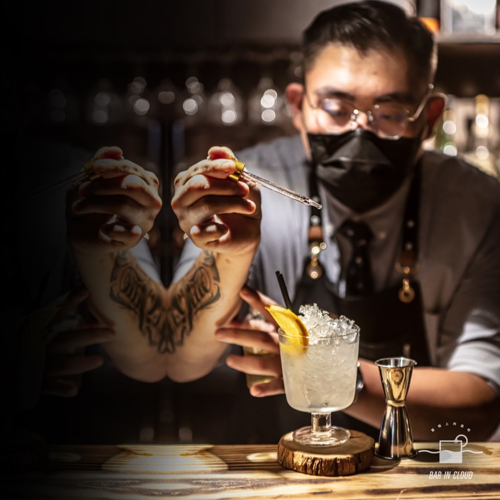 電影愛好者老蕭與我們分享,自己最喜歡的電影是終極追殺令,也將象徵的圖騰刺在自己手上;終極追殺令除了演員陣容強大以外,還有導演喜歡玩的不同宇宙觀,加上故事情節的安排,讓人不勝唏噓。而這杯以「終極追殺令」去設計的調酒,像是大家所熟知的mojito一樣,清澈透明的酒體加上碎冰的組合,琴酒的香氣與柚子纏繞,彼此和諧又競爭著,像是電影裡的主角在愛與死之間拔河。