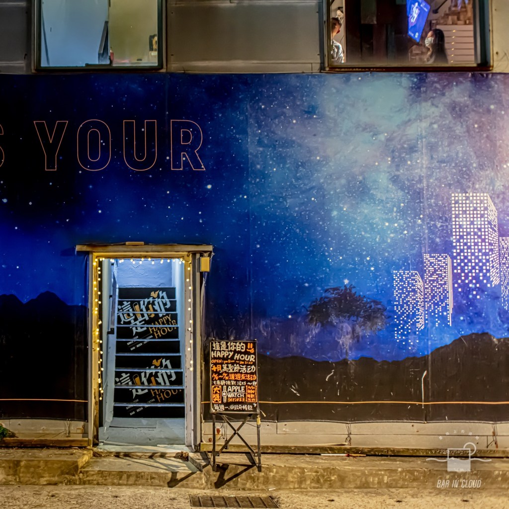 沿著中北路一直走,我卻苦尋不到「這是你的happy hour」門口,也看不到或大或小的招牌,但是在一個小小的三角窗店面向右轉,眼前豁然開朗看到一大面漂亮的彩繪牆。在這面牆的下方發現了一個小小的門,沿著這個門往裡面走,就像愛麗絲闖進兔子洞一樣,越往裡面走越發現新世界。