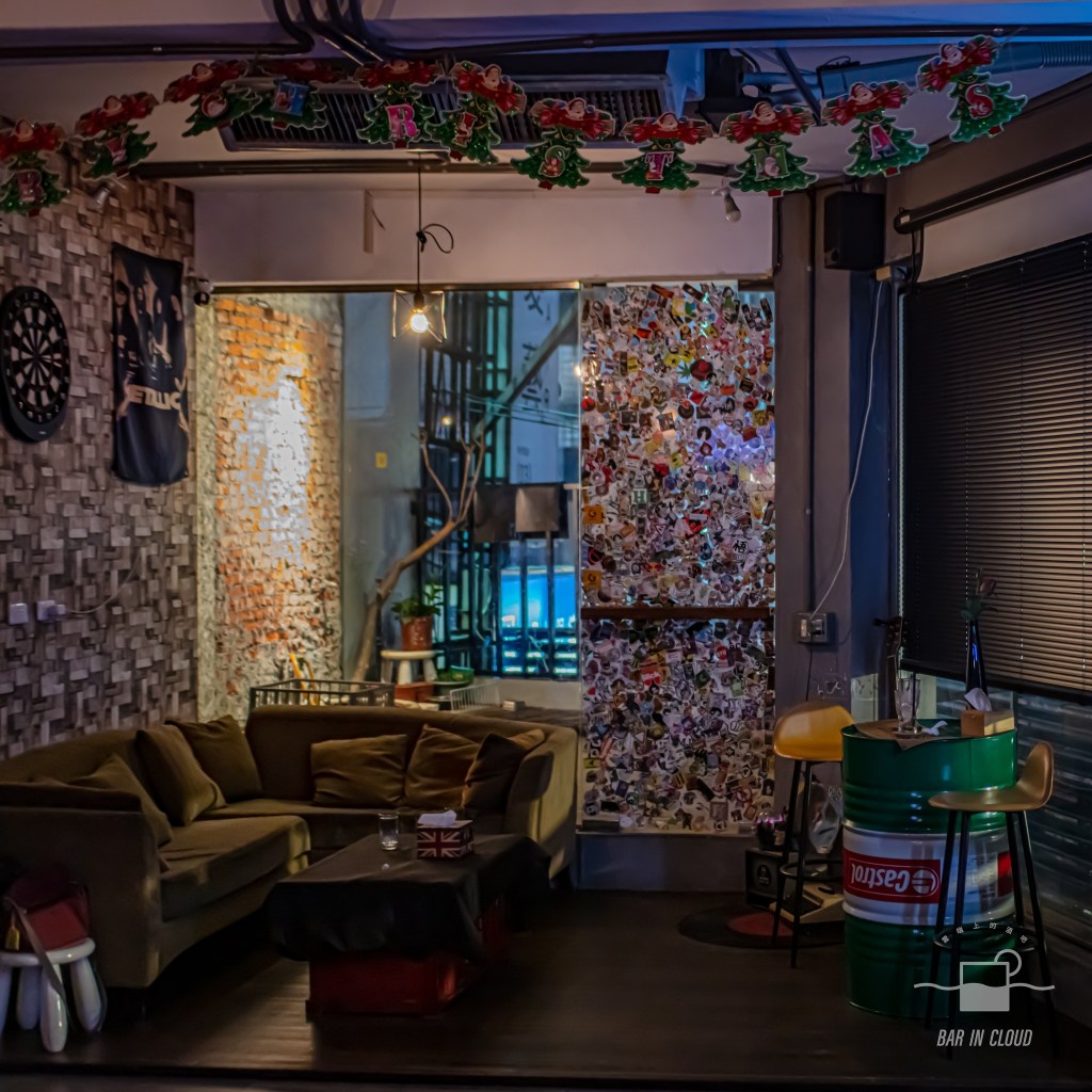 沿著樓梯往上走,二樓的左手邊便是吧檯與座位區,還有個小小的陽台可供大家吸菸,店內擺滿了各種極具個人風格的裝飾,也有受年輕人喜愛的飛鏢機,還有-最可愛的店長阿諾。