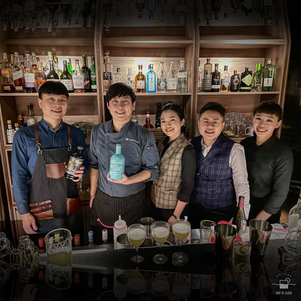 初次來訪雲吧,雲吧位於中壢後火車站與中原大學中間的巷弄中,一樓是名為沐詞間的咖啡廳,順著投射至地上的箭頭,乘坐電梯來到五樓,則是一家靜謐精美的小酒吧。走出電梯後,看到吧台內站立的調酒師,便對今夜的餐酒搭配充滿期待,因為當晚為我們服務的調酒師,是中壢知名老宅酒吧小舊閣樓的主理人, Michael Kao。