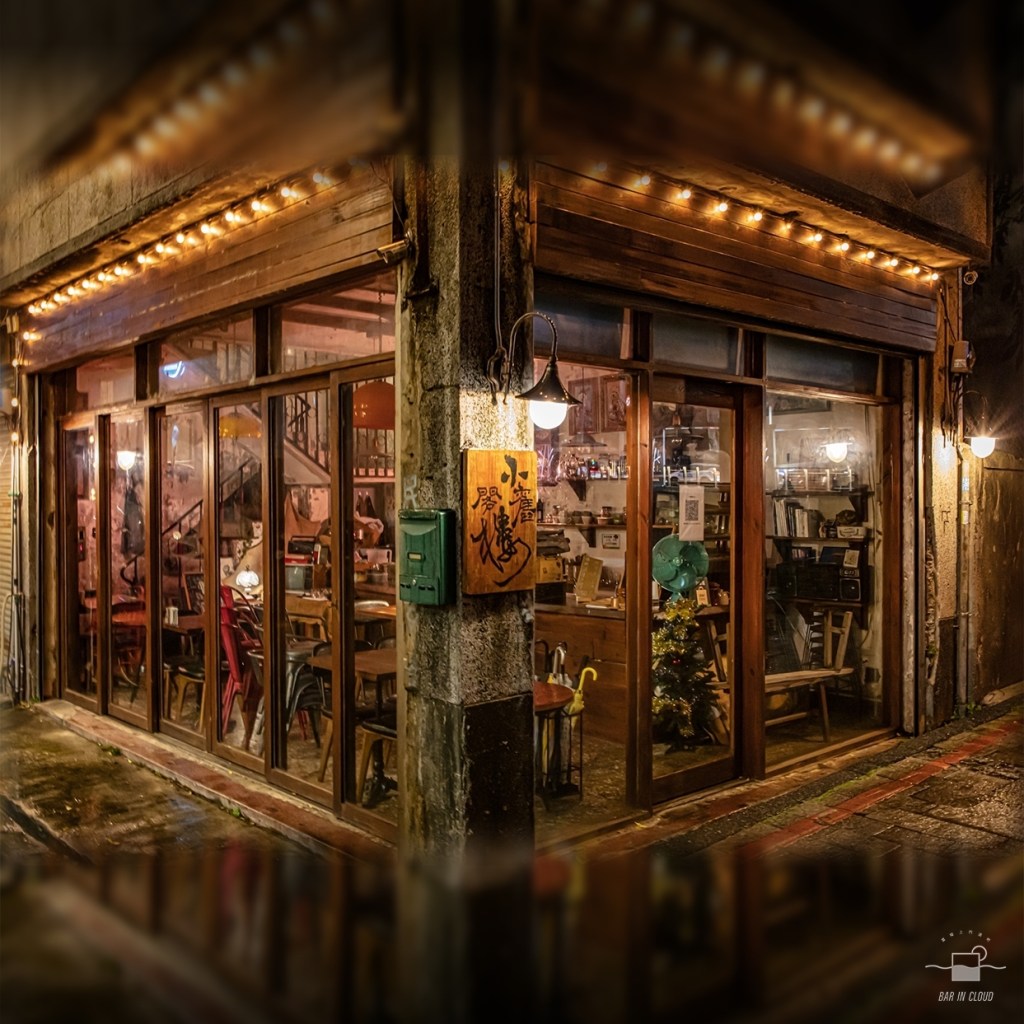 小舊閣樓的建築主體,是三樓半的老洋房,一樓的位置是個帶有文青氣息的咖啡廳,二樓是廚房,三樓的位置則是酒吧,閣樓的位置有個小包廂,戶外的陽台望出去,便是美麗的老街溪步道。