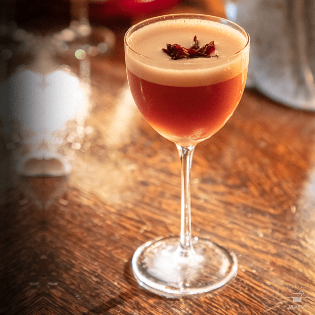 最後的甜點調酒,也是以人頭馬白蘭地 1738 當做基酒,名字就叫做 2022,原因是 Anber 希望這杯酒,可以為經歷兩年的磨難後的各位,帶來祝福。搭配桃子、乳酸、伯爵茶和堅果,乳酸的蛋白,讓這杯酒帶有豐厚的口感,伯爵茶的佛手柑香氣和桃子跟人頭馬 1738 獨特的茉莉花乾香氣非常契合。最後上面放上洛神花蜜餞,而洛神花的花語為等待、寧靜和希望,期許各位的 2022 能夠平靜而充滿希望的。