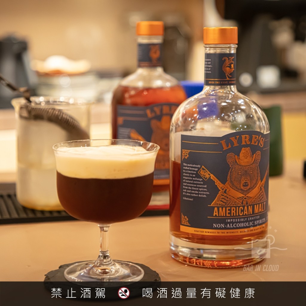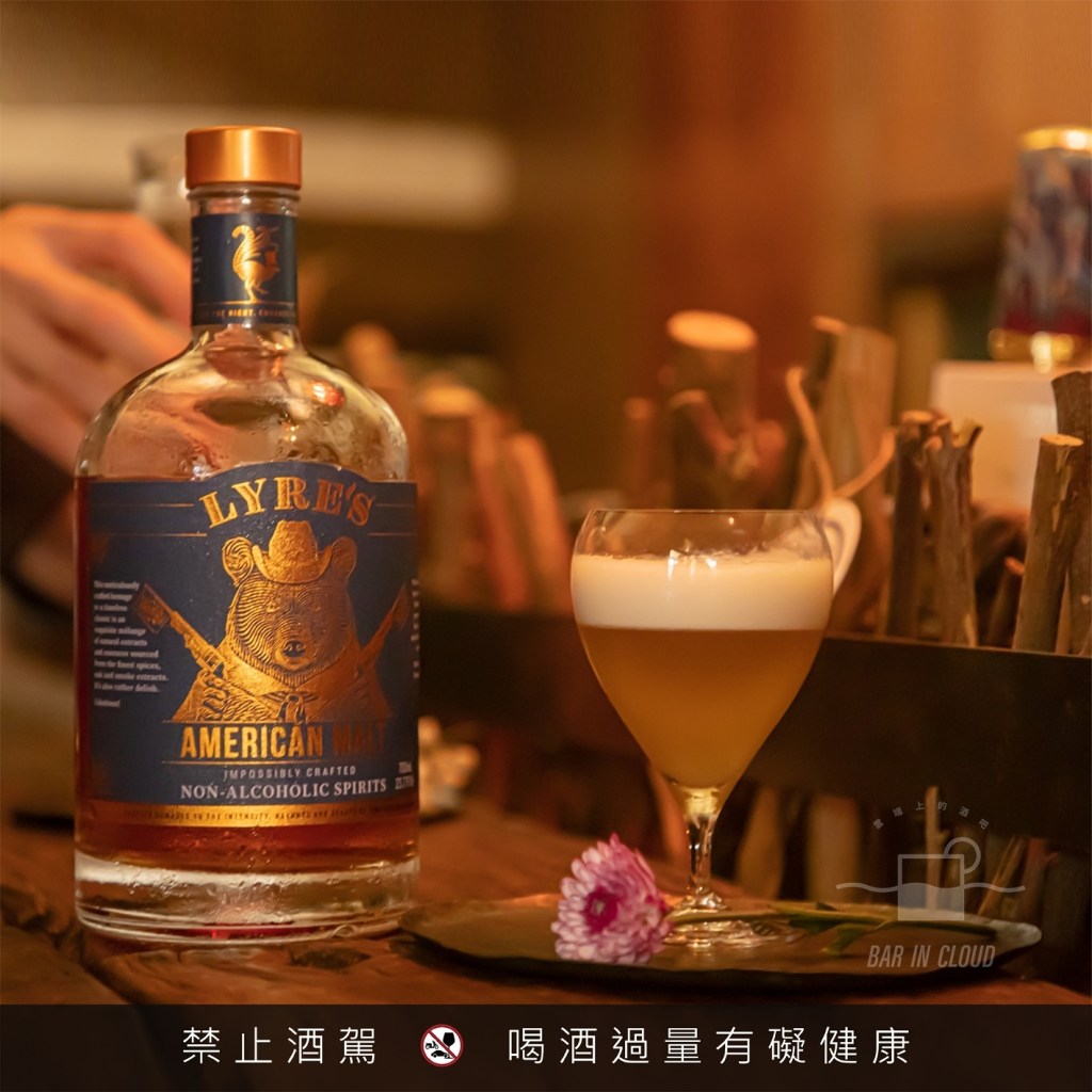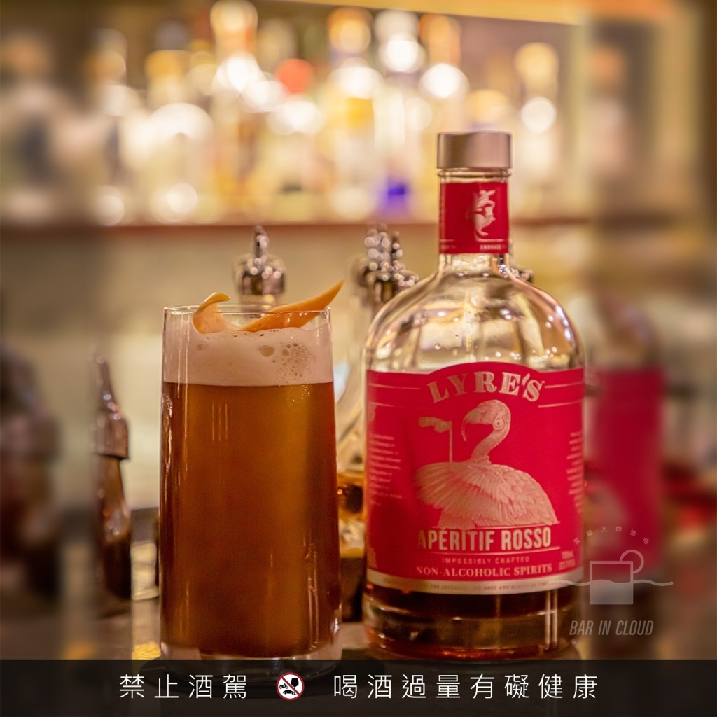 除了使用了 Lyre’s American Malt 和 Lyre’s White Cane 外,還有一隻甜香艾酒的無酒精基酒, Lyre’s Aperitif Rosso,帶有明顯的仙楂和烏梅的香氣,淡淡的甜味中,些許辛香料隱藏其中。
