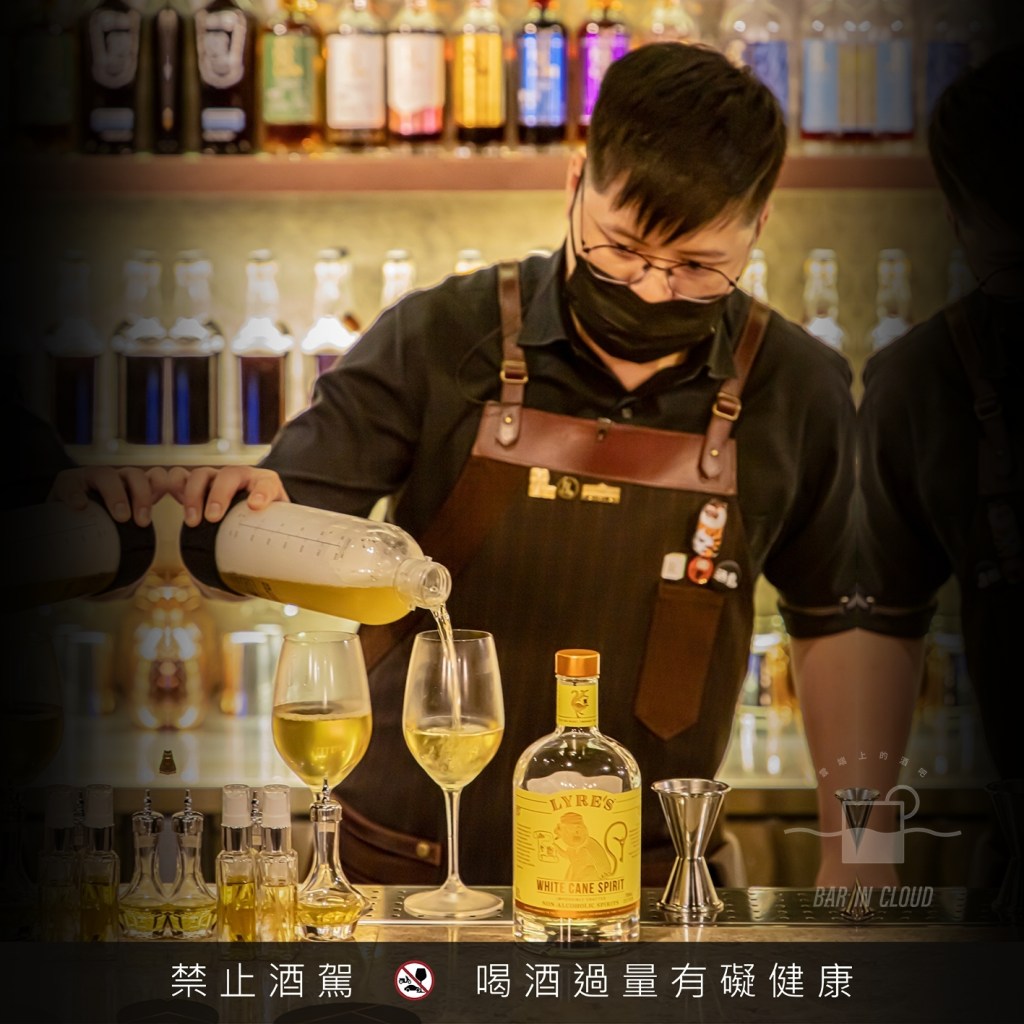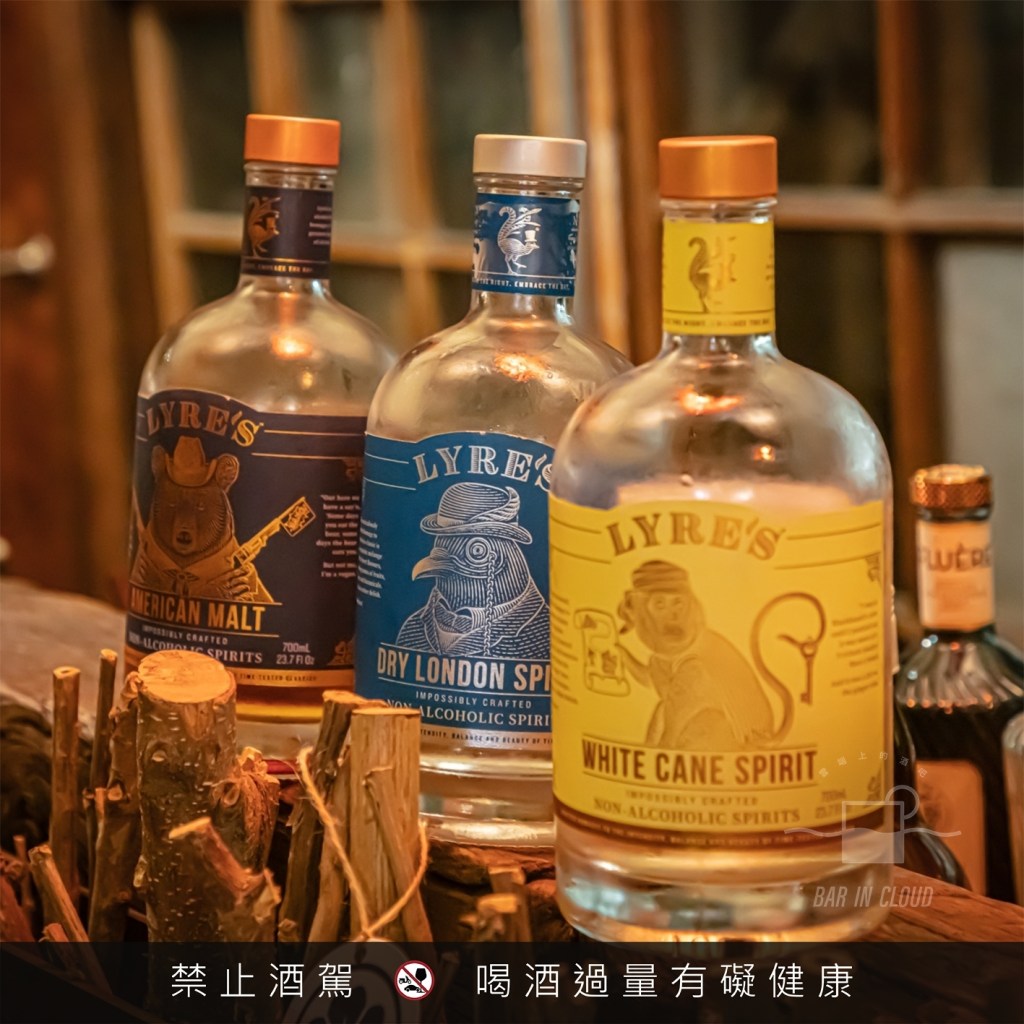 這次除了使用 Lyre’s American Malt外,額外還介紹了兩支 Lyre’s 無酒精基酒,分別是 Lyre’s Dry London Spirit 和 Lyre’s White Cane。Lyre’s Dry London Spirit 是琴酒的無酒精基酒,帶有草本、奎寧和柚子香氣; Lyre’s White Cane 則是蘭姆酒的無酒精基酒,嚐起來的味道類似小時候吃的水果風味硬糖果和些許木質調性風味。