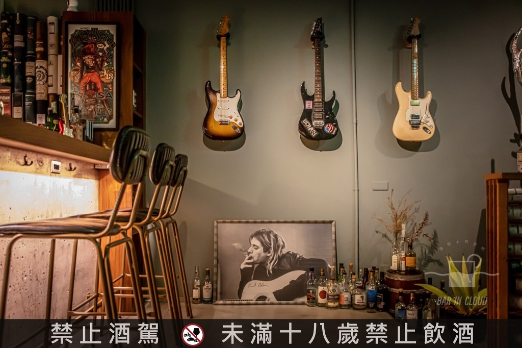 入門的玄關旁,掛著三把琴 (貝斯、吉他),是小刺的朋友,淡出音樂圈,將曾經的夥伴,高掛在 Dram Youth 的牆上,小刺不時,會拿下它們,以保養之名,在角落把弄著。