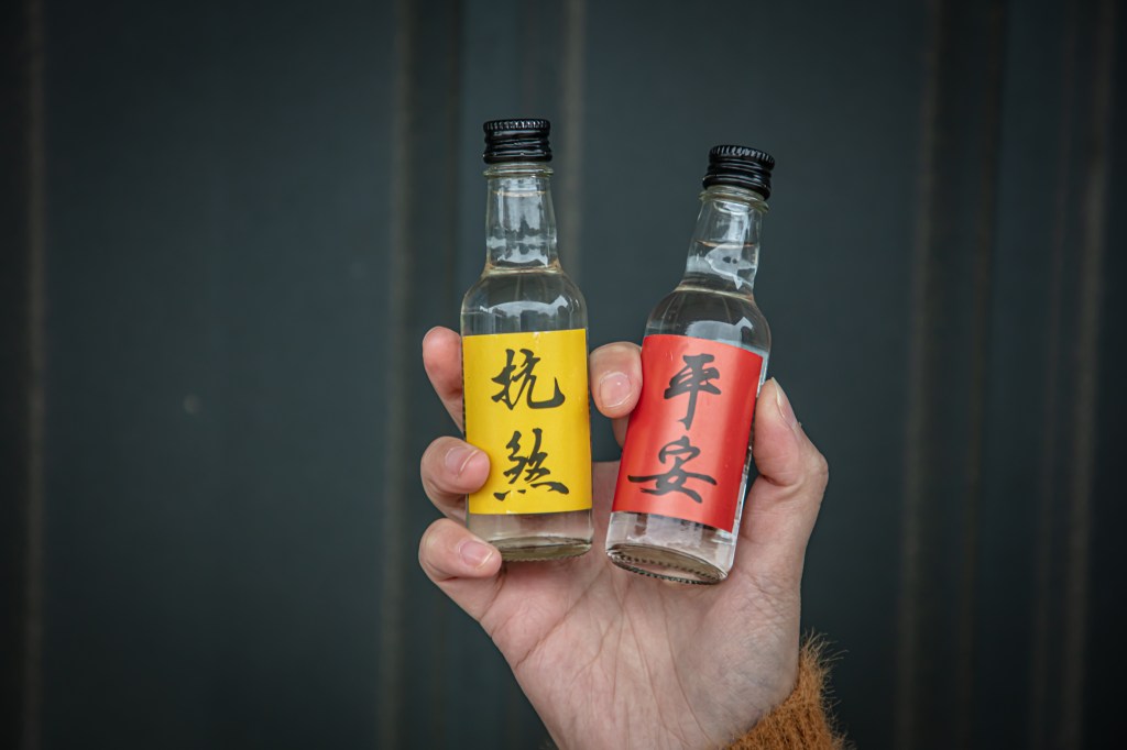 為什麼地瓜原酒 75% 取名為平安、抗煞,因為新冠疫情剛爆發時,全台灣都缺消毒用的酒精,恆器製酒的羅老闆便更改製程,將第一次蒸餾的酒頭、酒尾,做二次蒸餾,再將第二次蒸餾的酒心與第一次蒸餾的酒心勾兌,才獲得了 75% 的高酒精濃度,讓大家內服、外用兩相宜。