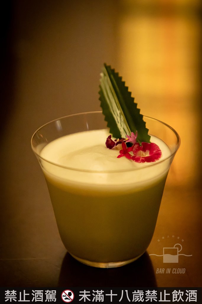 MQ Taipei FRIENDSHIP- MOONROCKx玉兔 這杯調酒是由廖乙哲親自設計,並嚴厲要求製作此杯調酒的材料,一定要使用新鮮的野薑花和蘆筍汁製作,不能使用隔夜的材料。搭配亨利爵士琴酒、杏仁和榛果。杏仁和榛果將野薑花的香氣轉換成一種豐富的奶甜味,搭配新鮮蘆筍的果汁,整體喝起來非常優雅,甜美的花果香會讓人不禁一口接上一口。